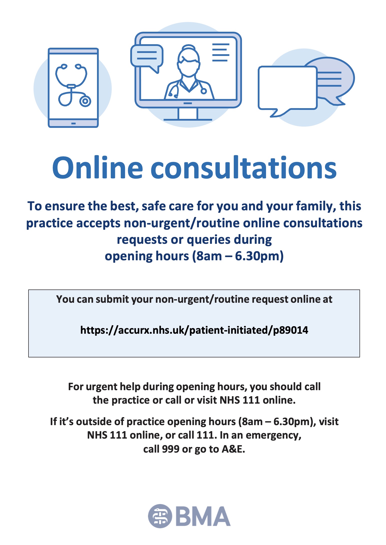 You can also ask the doctor to call you back before or after a certain time if this helps too. Please note the doctors will otherwise call you at some time during the day – usually in the morning or the afternoon.